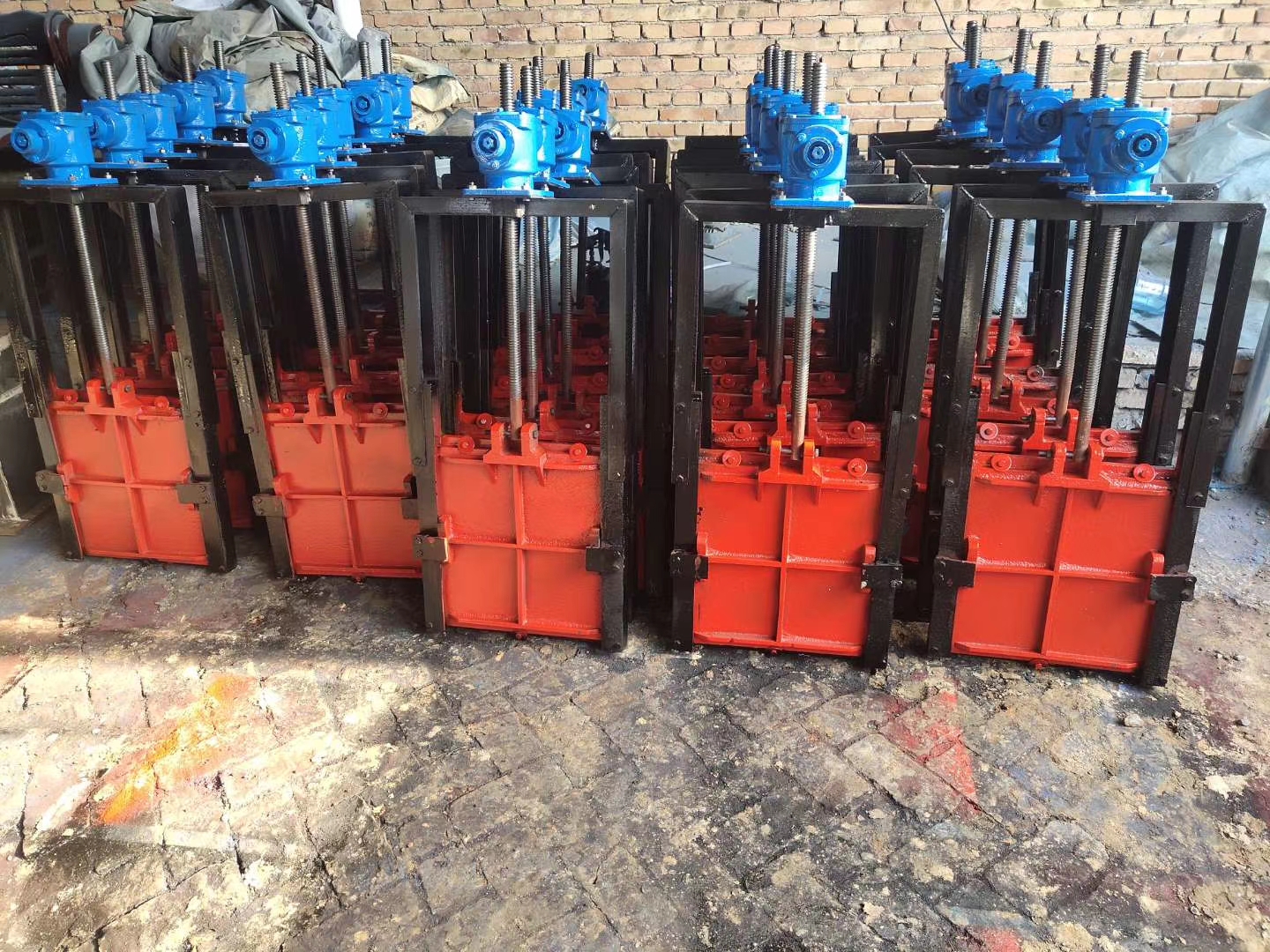 9.PZ機(jī)閘一體式鑄鐵閘門正常使用水頭1-6米,還可承受一定的反向水頭,為滿足用戶要求,可制造高水頭閘門。 11.PZ機(jī)閘一體式鑄鐵閘門在澆注混凝土?xí)r,流進(jìn)閘板、閘框、斜鐵、擋板間隙中的灰漿必須清除,防止灰漿凝固后影響閘門啟閉。