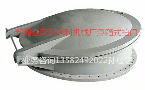 浮箱拍門具有流道正向單向開啟和反向關(guān)閉的作用。配重式拍門借助于配重的平衡作用,在水流的作用下使門頁自動開啟或關(guān)閉,或稍加外力作用使門頁開啟或關(guān)閉;浮箱式拍門則利用門頁在水中的浮力,在水流的作用下使門頁開啟或關(guān)閉。浮箱拍門適用于給排水及污水處理工程的各種管道和水渠道作溢流、止回之用,亦可用作各種豎井井蓋,它僅用于單向水流的圓形出水口。