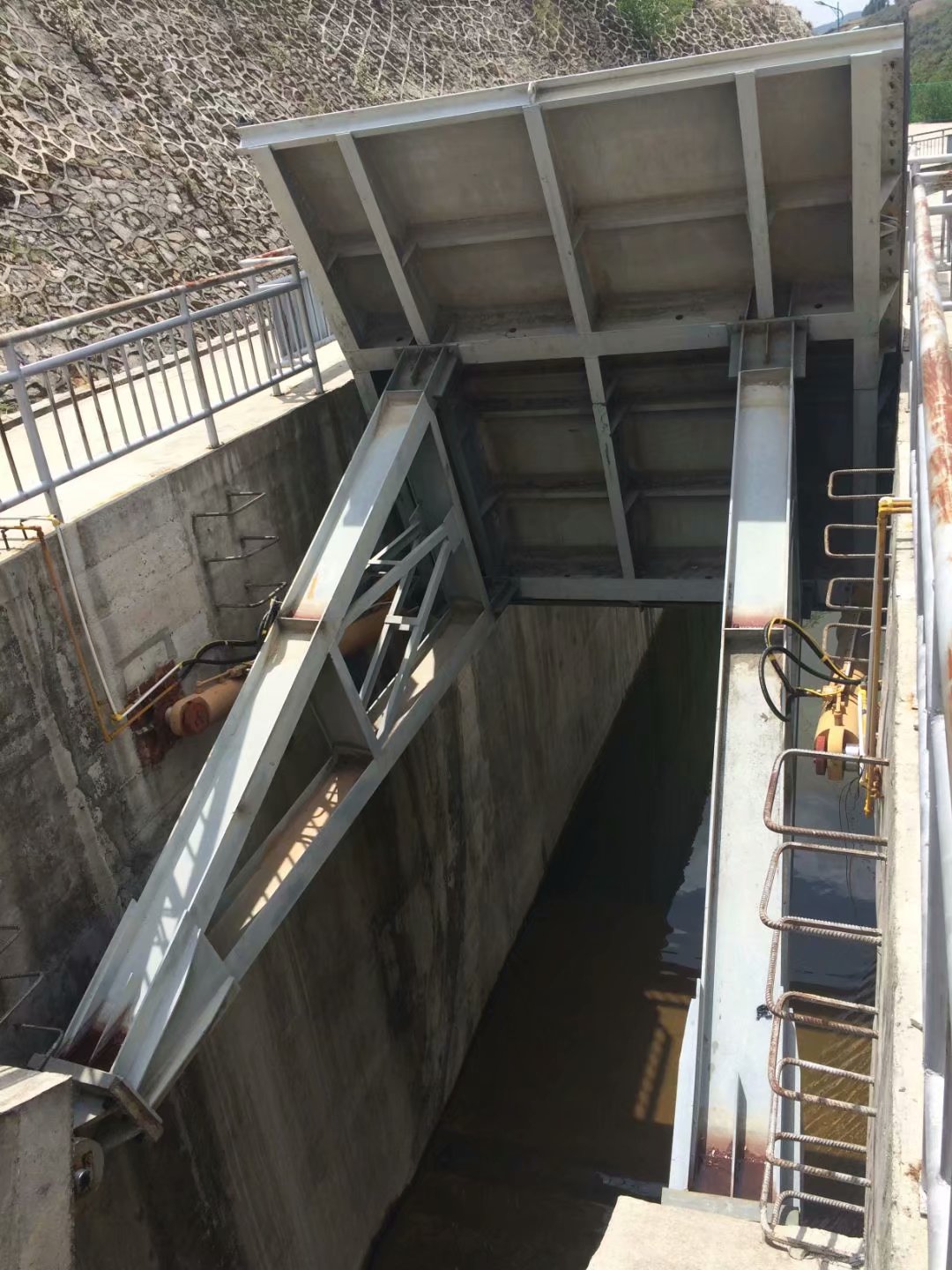 弧形鋼閘門系統(tǒng)采用液壓缸驅(qū)動,壩體坍塌可完全擱置在地板上,不堵水。當(dāng)水被阻塞時,擋水板由閘門后面的支撐框架支撐,氣缸返回活動柱塞,從而有效地保護(hù)柱塞免受腐蝕。這種新型門結(jié)構(gòu)獲得了國家發(fā)明專利。弧形鋼閘門是目前設(shè)計合理的閘門之一。安裝、操作和操作方便。可自由調(diào)節(jié)水的高度。它不受河流寬度、地理和氣候條件的限制。使用壽命長達(dá)50年。